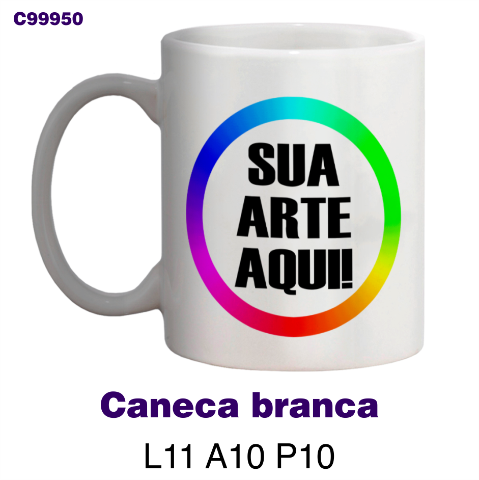 Descrição: Caneca cerâmica de 330ml branca, ideal para sublimação.